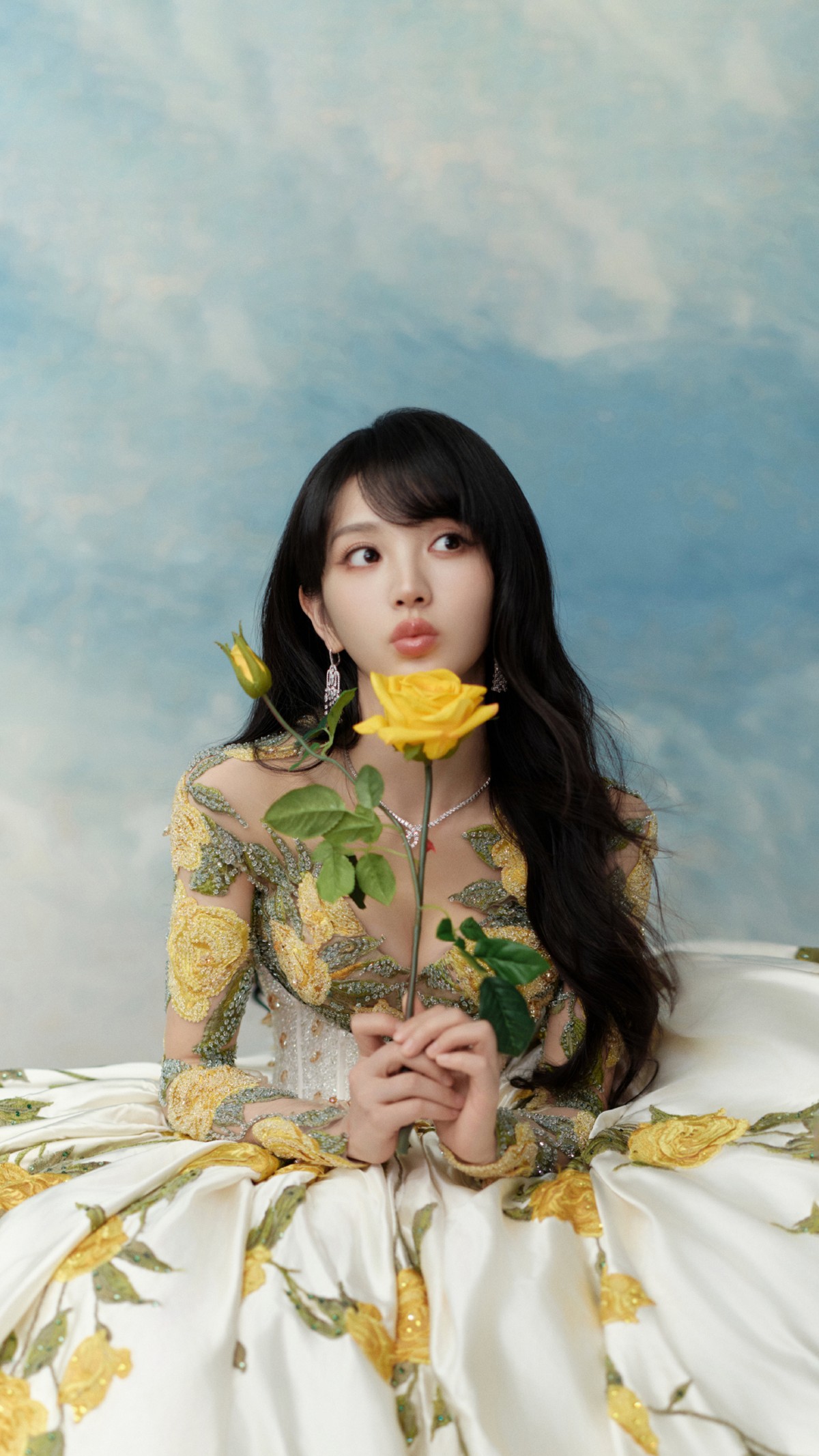 田曦薇这次简直美翻啦,完美契合Vogue“百花齐放”的主题,把黄色玫瑰穿在了身上,仿佛从“莫奈花园”中款款走出的仙子。这条黄玫瑰裙堪称一绝,水晶刺绣与立体花朵相互映衬,在光影下闪烁着迷人的光芒,就像把整个花园的璀璨都凝聚在了裙摆之上。油画滤镜一打,那意境,妥妥的“莫奈花园”重现,美得如梦似幻。